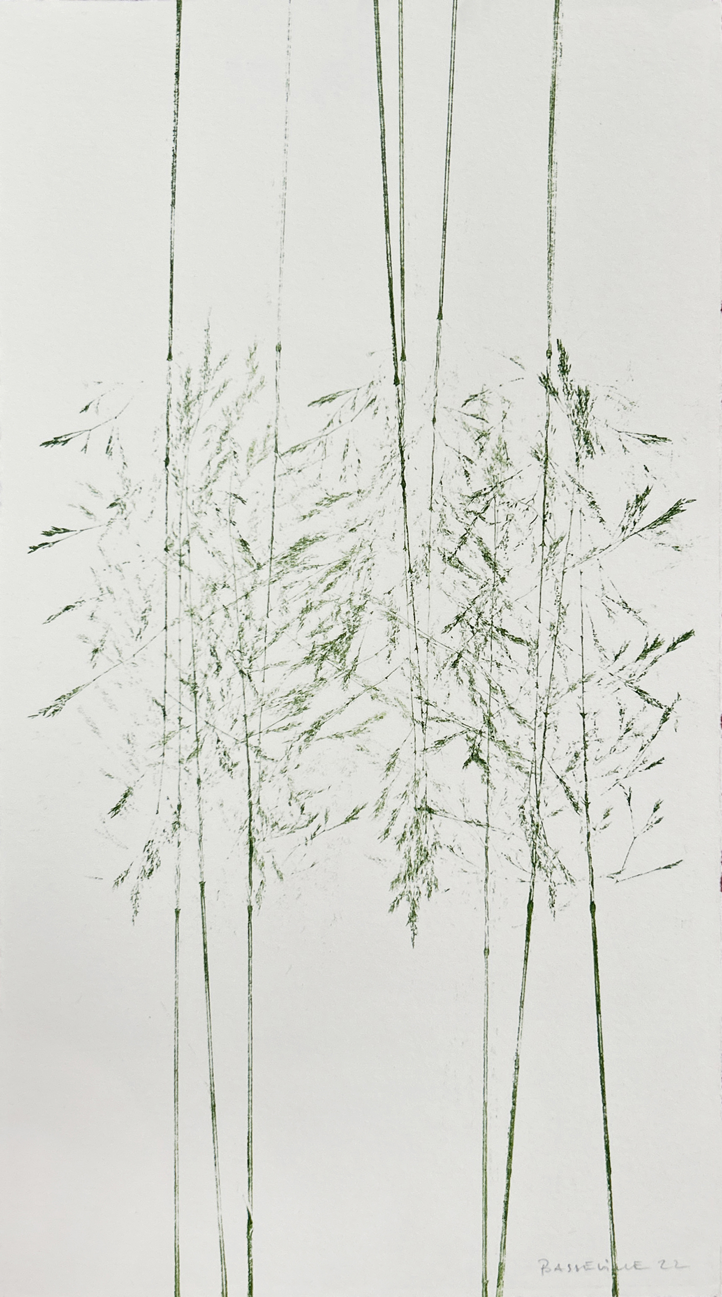 Dans la série Apparaître, Édith Basseville capte l’instant fragile où la nature se révèle. Par empreintes directes de végétaux encrés et pressés contre le papier, elle compose des surfaces sensibles où chaque trace témoigne de la naissance du vivant. L’émergence des formes végétales devient le point de départ d’un récit organique, entre émergence et présence.