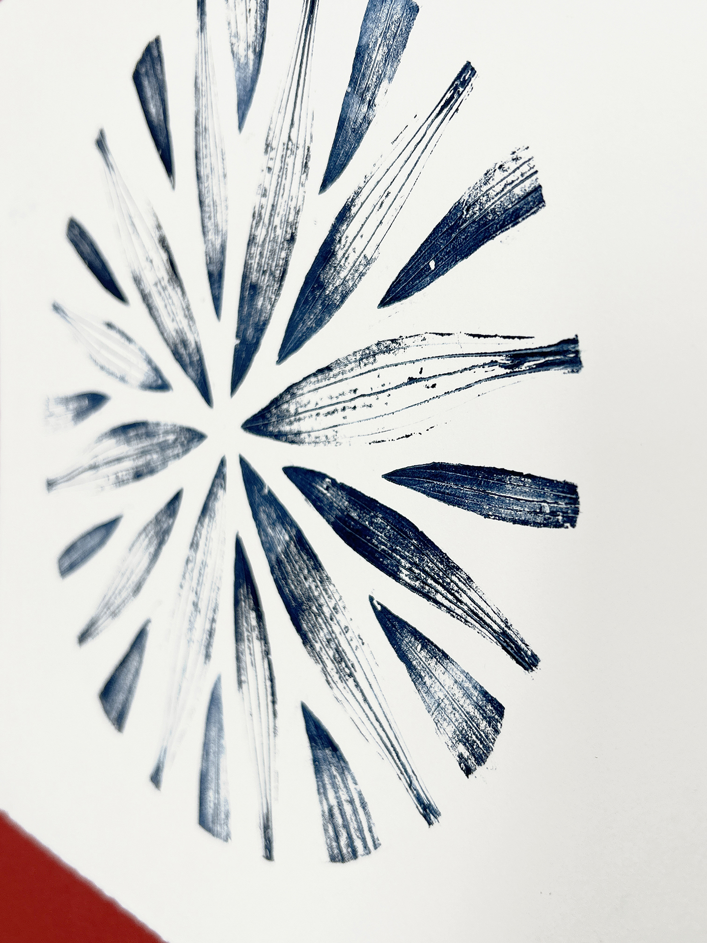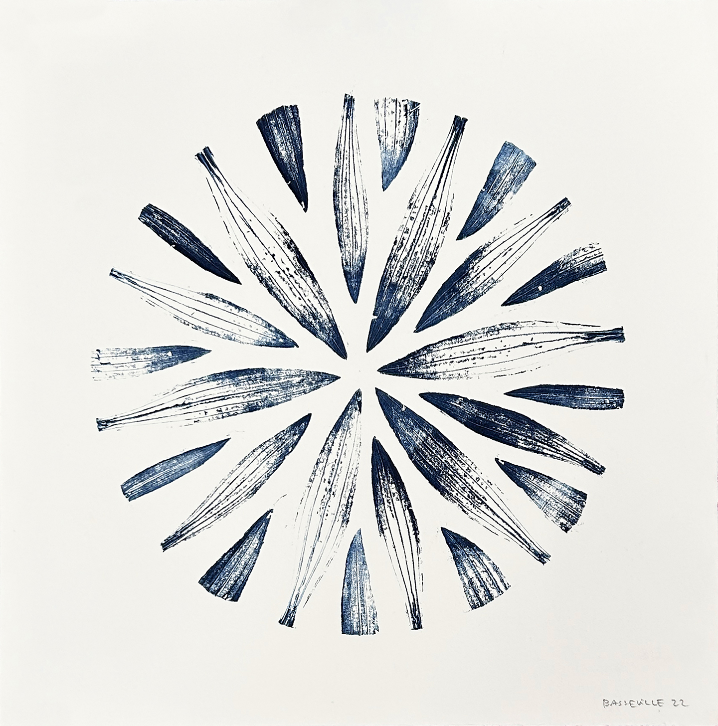 Dans la série Coloniser, Édith Basseville explore le mouvement d’expansion du végétal. Par empreintes directes de végétaux encrés et pressés contre le papier, elle compose des surfaces où la nature s’organise en réseaux et investit progressivement l’espace de la feuille. La composition devient terrain d’occupation : le végétal s’affirme comme force structurante, capable de redessiner son environnement.