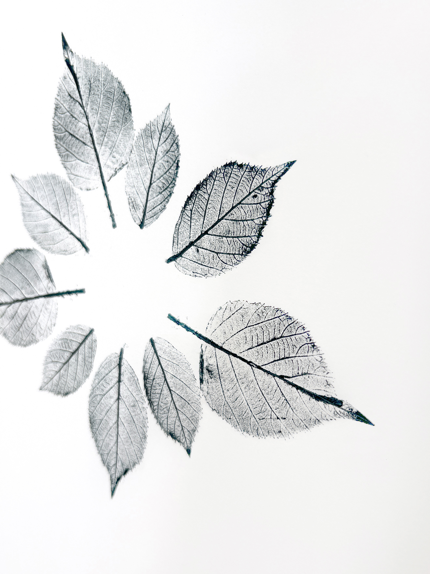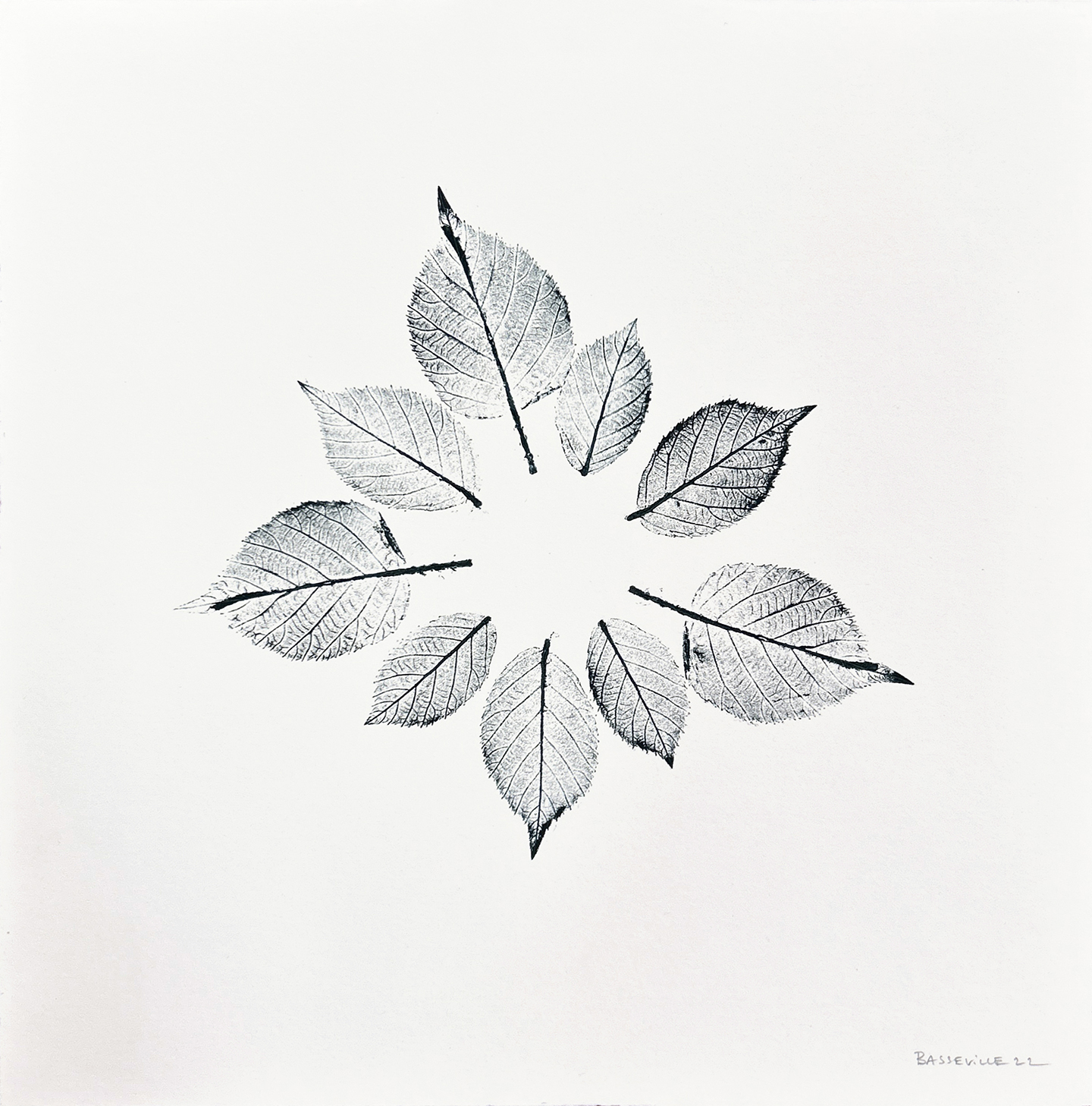 Dans la série Se propager, les végétaux semblent s’étendre librement, déployant leurs motifs en constellations mouvantes. Par empreintes directes de végétaux encrés et pressés contre le papier, Edith Basseville compose des surfaces qui traduisent la vitalité d’un processus en expansion, où la nature franchit les limites imposées et s’impose par sa dynamique propre.